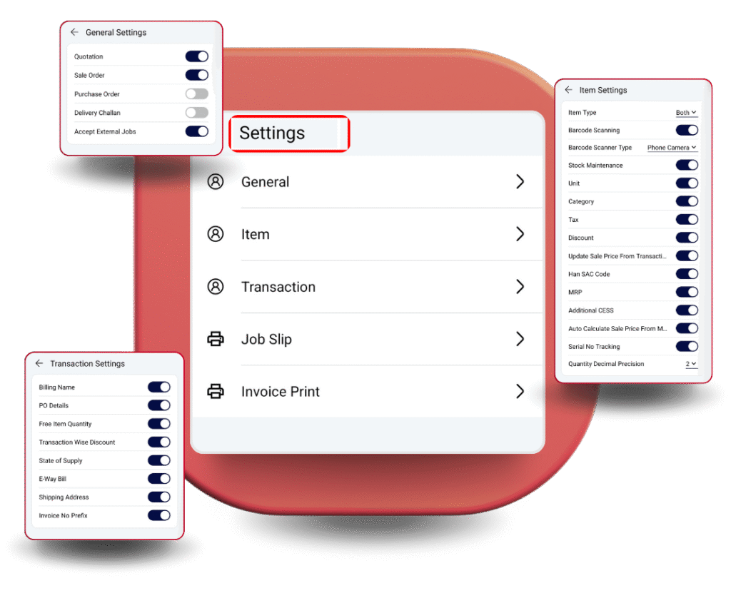 Adjust configurations for items, transactions, and job slips to fit your workflow.